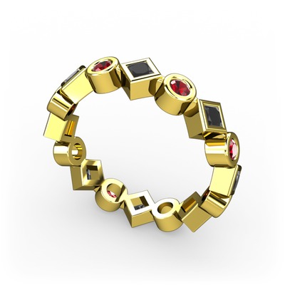 Siyah zirkon ve garnet 8 ayar altın yüzük