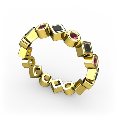 Siyah zirkon ve kök yakut 8 ayar altın yüzük