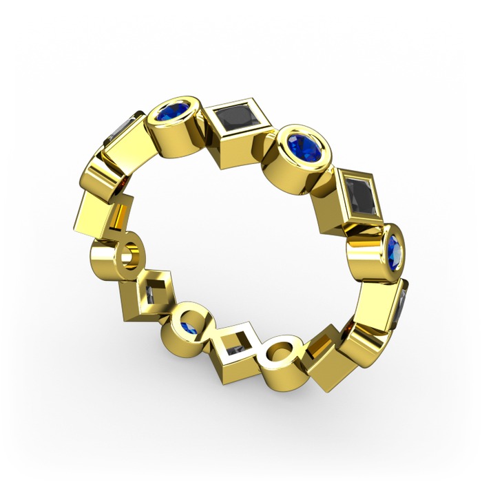 Siyah zirkon ve lab safir 14 ayar altın yüzük