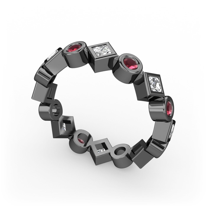 Swarovski ve kök yakut 925 ayar siyah rodyum kaplama gümüş yüzük