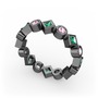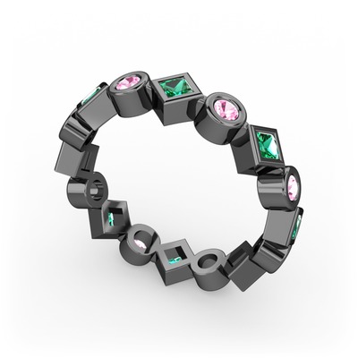Yeşil kuvars ve pembe kuvars 925 ayar siyah rodyum kaplama gümüş yüzük