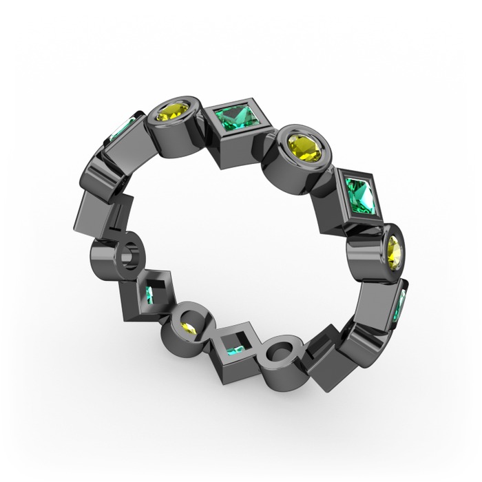 Yeşil kuvars ve peridot 925 ayar siyah rodyum kaplama gümüş yüzük