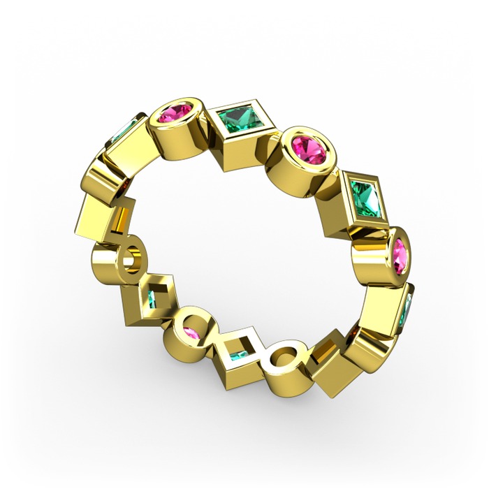 Yeşil kuvars ve rodolit garnet 14 ayar altın yüzük