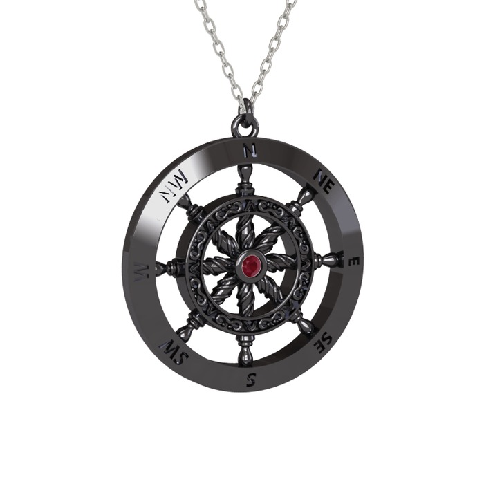 Kök yakut 925 ayar siyah rodyum kaplama gümüş kolye (40 cm beyaz altın rolo zincir)