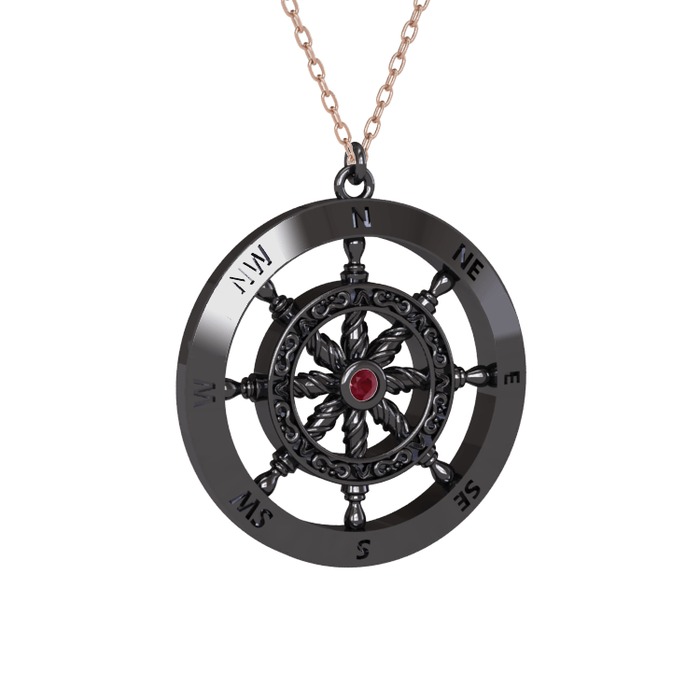 Kök yakut 925 ayar siyah rodyum kaplama gümüş kolye (40 cm rose altın rolo zincir)