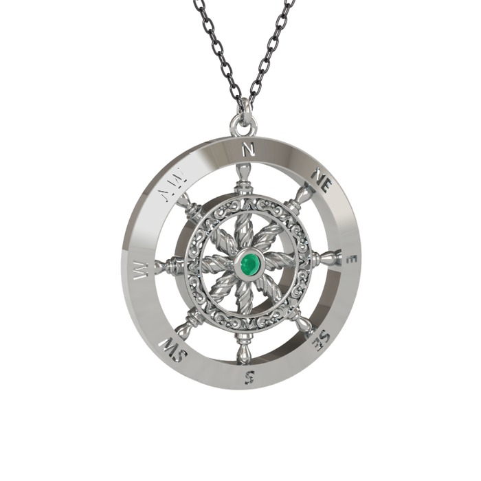 Kök zümrüt 18 ayar beyaz altın kolye (40 cm gümüş rolo zincir)