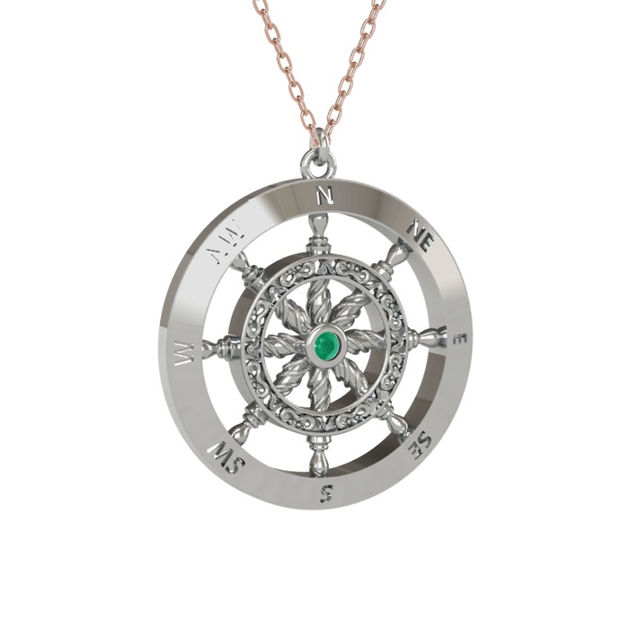 Kök zümrüt 18 ayar beyaz altın kolye (40 cm rose altın rolo zincir)
