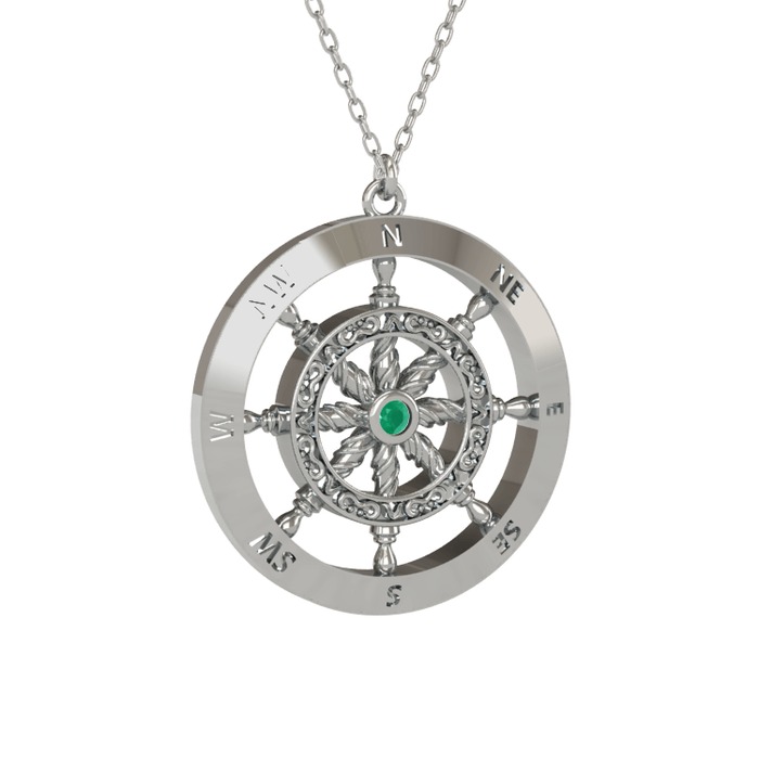 Kök zümrüt 925 ayar gümüş kolye (40 cm beyaz altın rolo zincir)