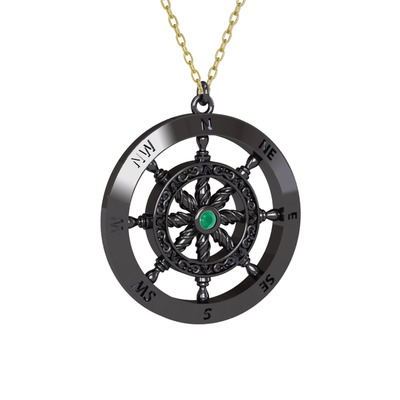 Kök zümrüt 925 ayar siyah rodyum kaplama gümüş kolye (40 cm altın rolo zincir)