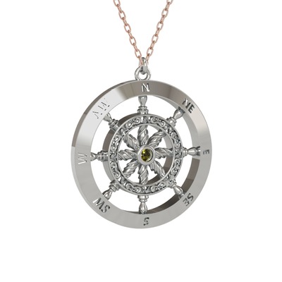 Peridot 18 ayar beyaz altın kolye (40 cm rose altın rolo zincir)