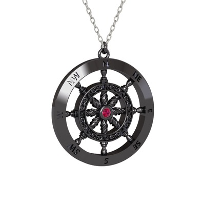 Rodolit garnet 925 ayar siyah rodyum kaplama gümüş kolye (40 cm beyaz altın rolo zincir)