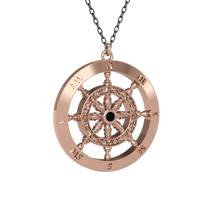 Siyah zirkon 8 ayar rose altın kolye (40 cm gümüş rolo zincir)