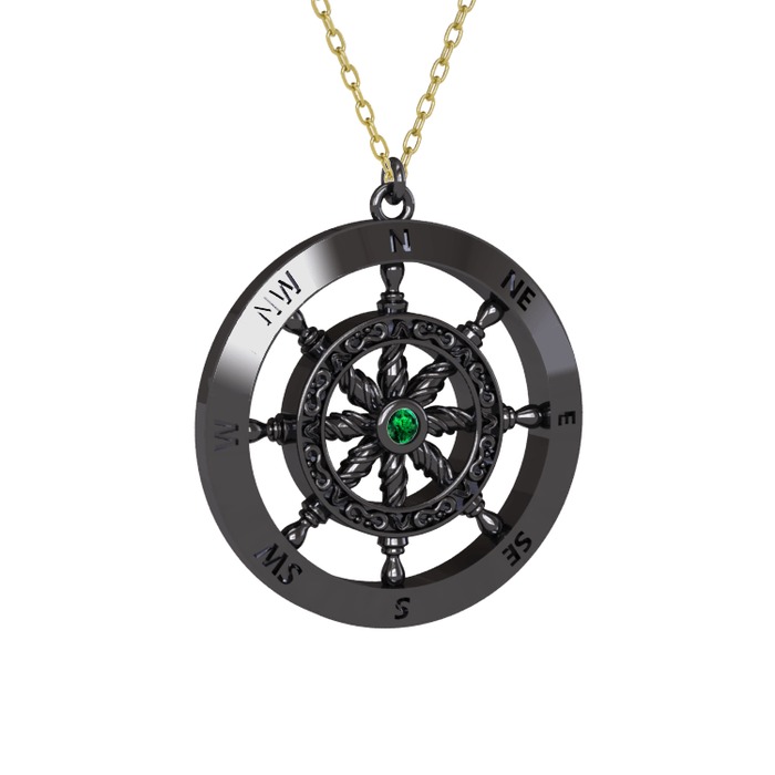Yeşil kuvars 925 ayar siyah rodyum kaplama gümüş kolye (40 cm altın rolo zincir)
