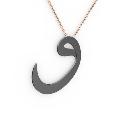 925 ayar siyah rodyum kaplama gümüş kolye (40 cm rose altın rolo zincir)