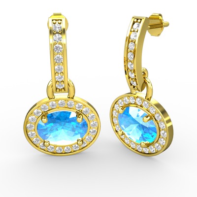 Akuamarin ve pırlanta 925 ayar altın kaplama gümüş küpe (0.616 karat)