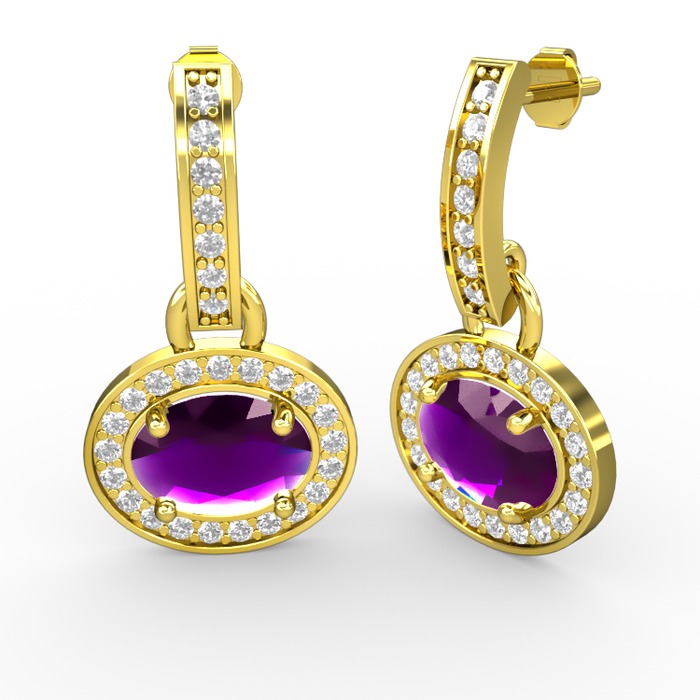 Ametist ve beyaz zirkon 8 ayar altın küpe