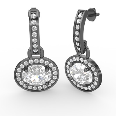 Beyaz zirkon 925 ayar siyah rodyum kaplama gümüş küpe