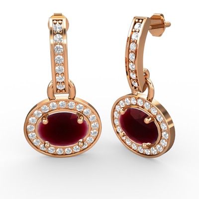 Kök yakut ve pırlanta 14 ayar rose altın küpe (0.616 karat)