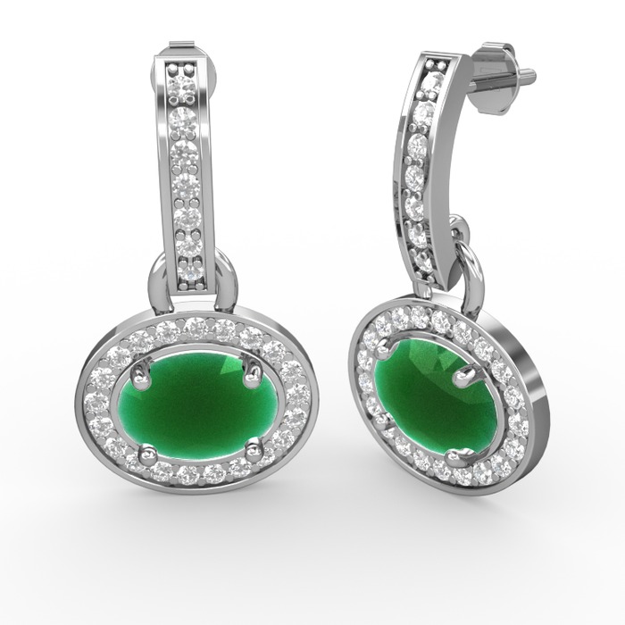 Kök zümrüt ve beyaz zirkon 8 ayar beyaz altın küpe