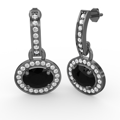 Siyah zirkon ve pırlanta 925 ayar siyah rodyum kaplama gümüş küpe (0.616 karat)