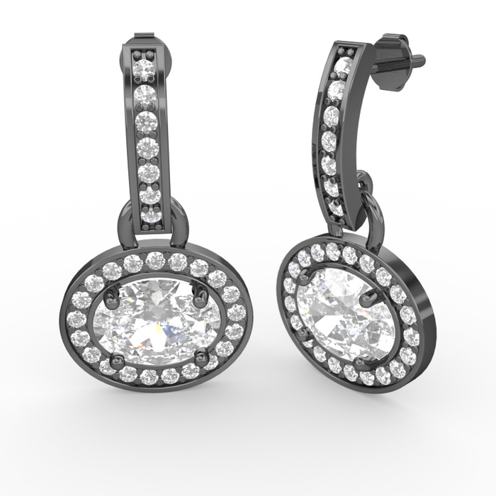 Swarovski ve pırlanta 925 ayar siyah rodyum kaplama gümüş küpe (0.616 karat)