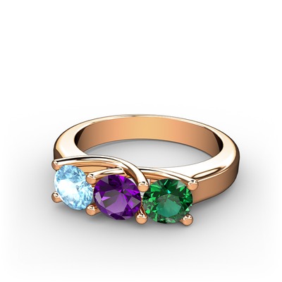 Akuamarin, ametist ve yeşil kuvars 14 ayar rose altın yüzük