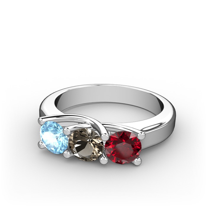 Akuamarin, dumanlı kuvars ve garnet 14 ayar beyaz altın yüzük