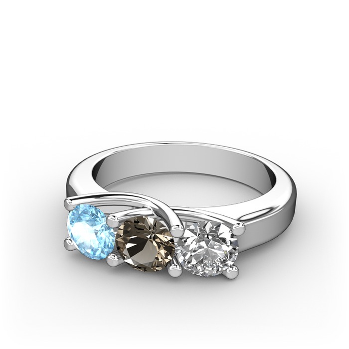 Akuamarin, dumanlı kuvars ve pırlanta 8 ayar beyaz altın yüzük (0.5 karat)