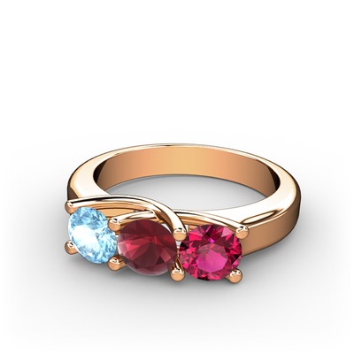 Akuamarin, kök yakut ve rodolit garnet 18 ayar rose altın yüzük