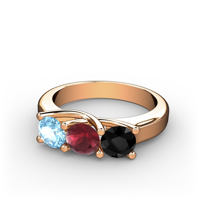 Akuamarin, kök yakut ve siyah zirkon 18 ayar rose altın yüzük