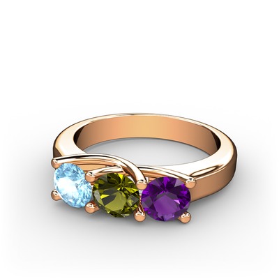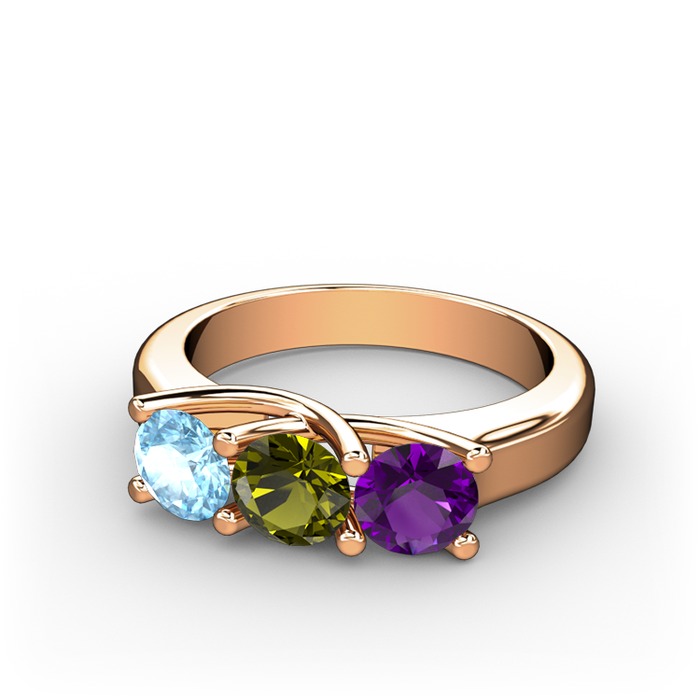 Akuamarin, peridot ve ametist 8 ayar rose altın yüzük