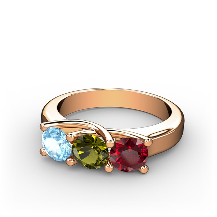 Akuamarin, peridot ve garnet 14 ayar rose altın yüzük