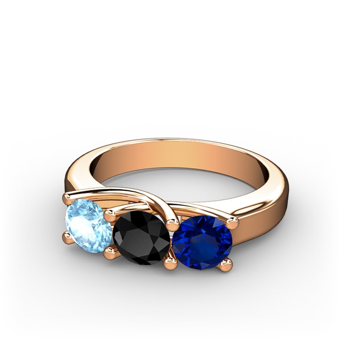Akuamarin, siyah zirkon ve lab safir 14 ayar rose altın yüzük
