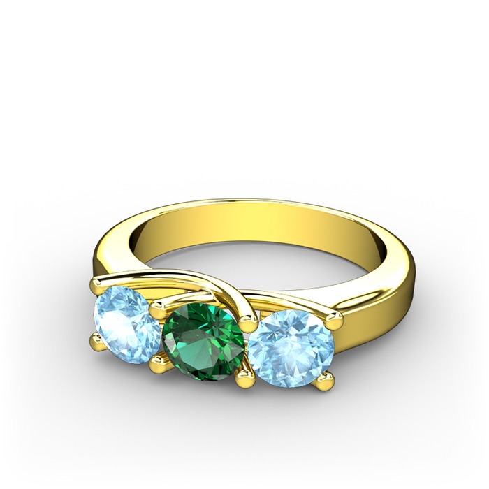 Akuamarin ve yeşil kuvars 8 ayar altın yüzük