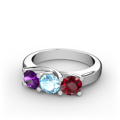 Ametist, akuamarin ve garnet 14 ayar beyaz altın yüzük