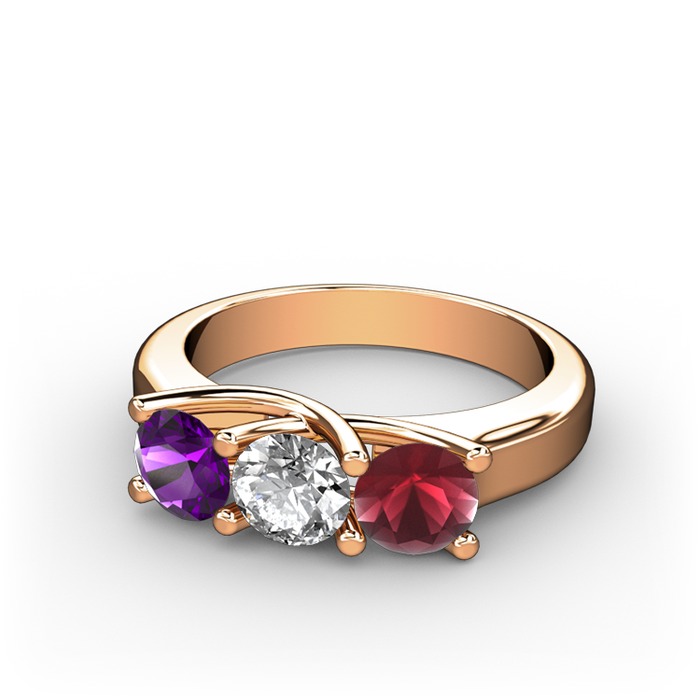 Ametist, beyaz zirkon ve kök yakut 14 ayar rose altın yüzük