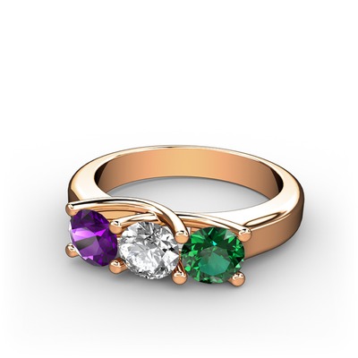 Ametist, beyaz zirkon ve yeşil kuvars 18 ayar rose altın yüzük