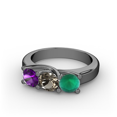 Ametist, dumanlı kuvars ve kök zümrüt 925 ayar siyah rodyum kaplama gümüş yüzük