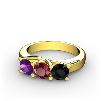 Ametist, garnet ve siyah zirkon 8 ayar altın yüzük