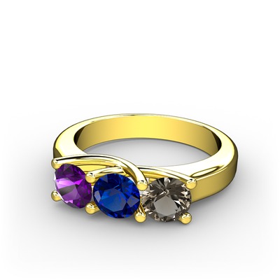 Ametist, lab safir ve dumanlı kuvars 8 ayar altın yüzük