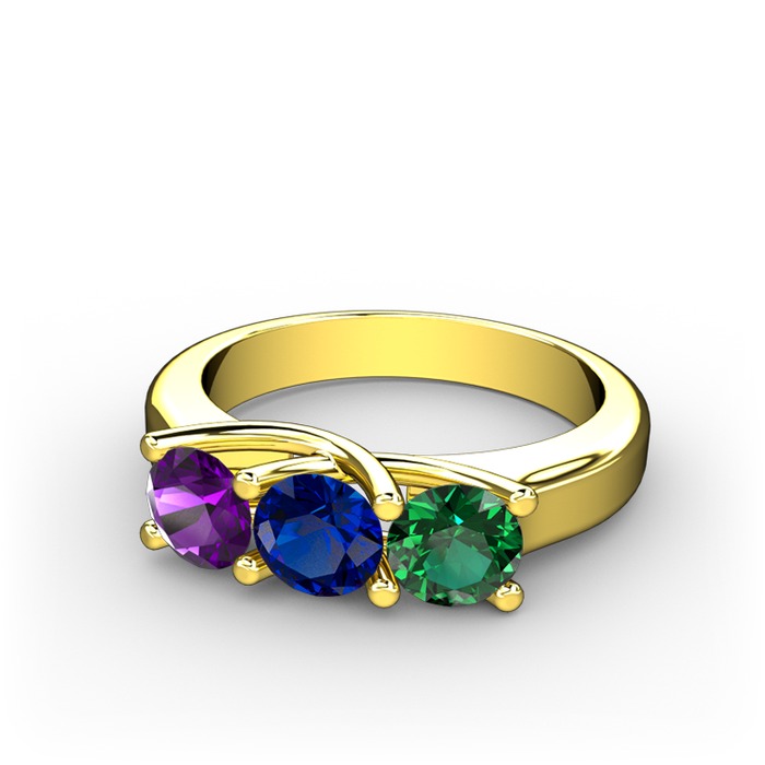 Ametist, lab safir ve yeşil kuvars 8 ayar altın yüzük