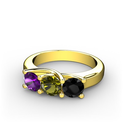 Ametist, peridot ve siyah zirkon 18 ayar altın yüzük
