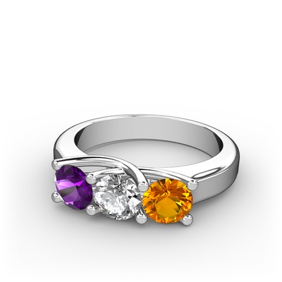 Ametist, pırlanta ve sitrin 8 ayar beyaz altın yüzük (0.5 karat)