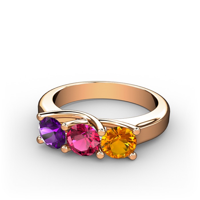 Ametist, rodolit garnet ve sitrin 14 ayar rose altın yüzük