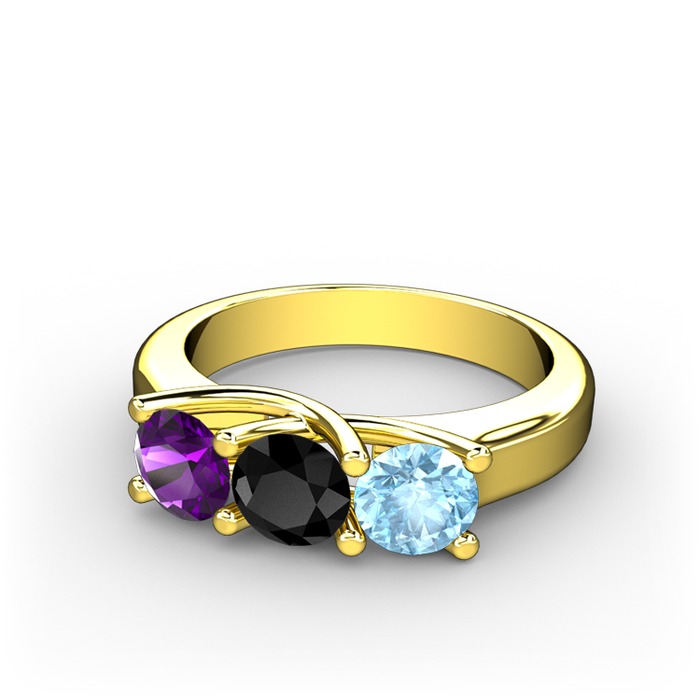 Ametist, siyah zirkon ve akuamarin 8 ayar altın yüzük