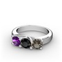 Ametist, siyah zirkon ve dumanlı kuvars 14 ayar beyaz altın yüzük