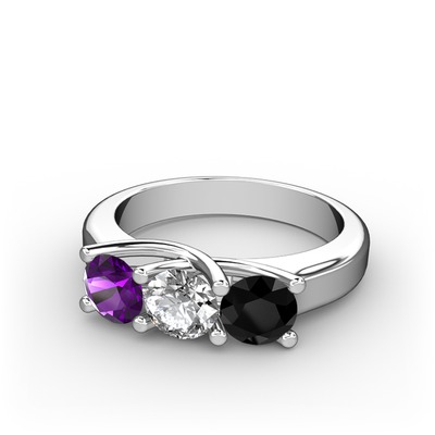 Ametist, swarovski ve siyah zirkon 14 ayar beyaz altın yüzük