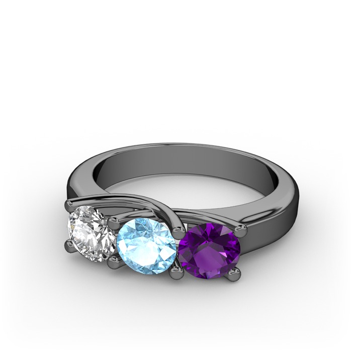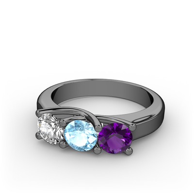 Beyaz zirkon, akuamarin ve ametist 925 ayar siyah rodyum kaplama gümüş yüzük