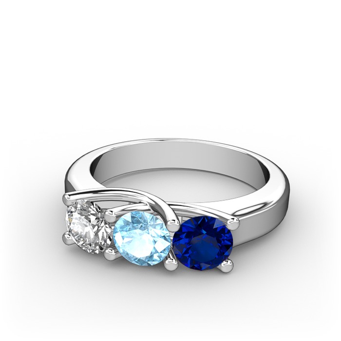 Beyaz zirkon, akuamarin ve lab safir 18 ayar beyaz altın yüzük