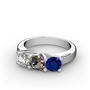 Beyaz zirkon, dumanlı kuvars ve lab safir 8 ayar beyaz altın yüzük